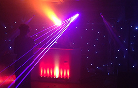 Bij een feest kunnen, naast ‘normaal’ licht, ook laser effecten worden toegepast.